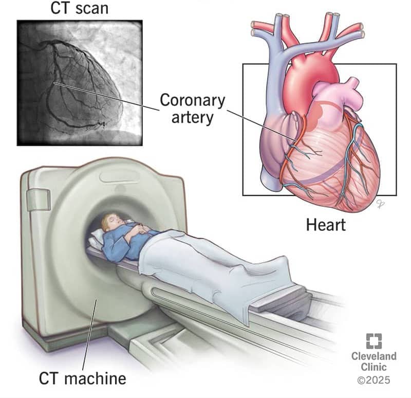 A CCTA can only be conducted with a physician referral and is typically reserved for patients with higher risk profiles, symptoms, or who want more insight into a calcium score.